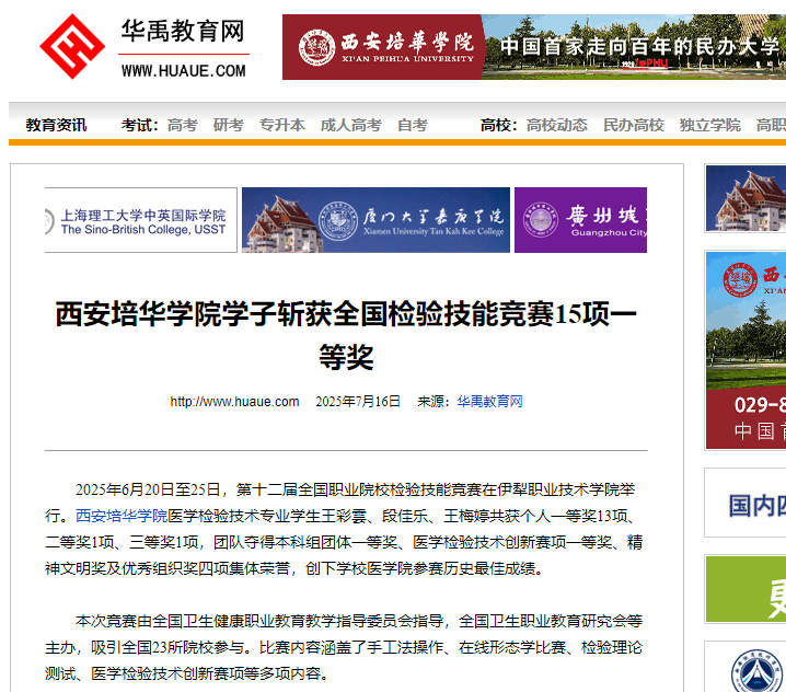 2025年6月20日至25日,第十二届全国职业院校检验技能竞赛在伊犁职业技术学院举行。多多28医学检验技术专业学生王彩雲、段佳乐、王梅婷共获个人一等奖13项、二等奖1项、三等奖1项,团队夺得本科组团体一等奖、医学检验技术创新赛项一等奖、精神文明奖及优秀组织奖四项集体荣誉,创下学校医学院参赛历史最佳成绩。
