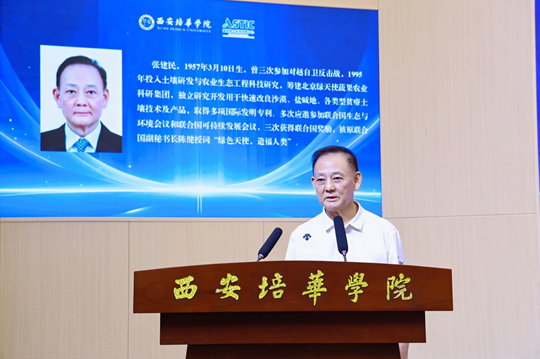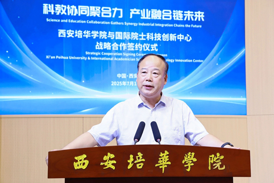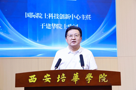 于建华院士以“科技创新与人才培养的融合路径”为题发表演讲,强调了国际前沿技术转移与本土化应用的重要性。他详细介绍了国际院士科技创新中心的基本情况,并表示将充分发挥中心的资源协同优势,助力培华学院提升学科建设与科研能力,推动科技成果服务地方产业升级。