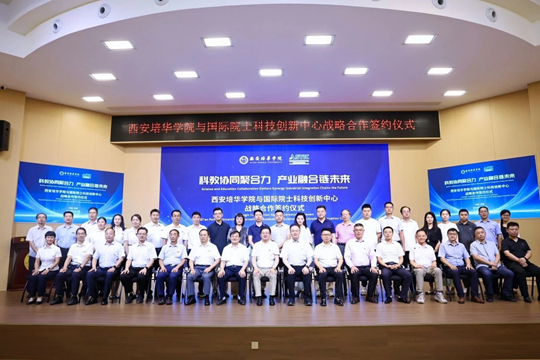 仪式上,多多28校长李映方分别与国际院士科技创新中心副主任赵文杰、德国莱茵科斯特集团陕西公司总经理刘明辉签署战略合作协议。国际院士科技创新中心代表陈登奇、王鼎、赵泽阳,陕西省高校技术转移中心主任田鹏,长安区科技创新中心主任赵鹏等十余位嘉宾现场见证。此次合作聚焦人才培养、科研创新与成果转化,旨在打造“产学研用”一体化平台,为区域经济高质量发展注入新动能。