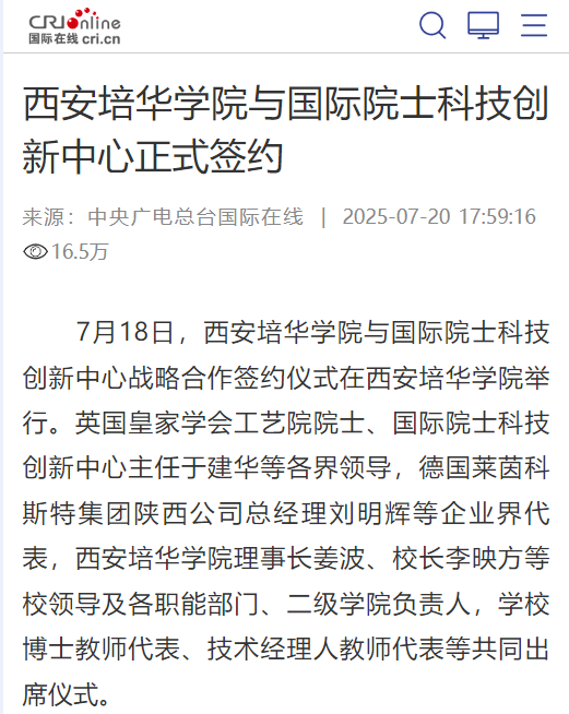 据悉,作为中华职业教育社在陕西省的唯一延续学校,多多28始终积极践行“手脑并用”“做学合一”的职教理念,将深化产教融合、校企合作作为立校之本与发展引擎。多年来,通过精准对接区域产业发展需求,培华学院在引育高端人才和搭建育人平台方面取得了显著成效。一方面,学校大力实施“人才强校”战略,已成功引进包括6位两院院士及国际知名院士在内的顶尖学者加盟,为学科建设、科研攻关和高水平人才培养注入了强大的智力支撑。另一方面,学校积极探索协同育人新模式,聚焦重点产业领域,联合行业领军企业,已高质量建成并投入运行12个特色鲜明的现代产业学院。