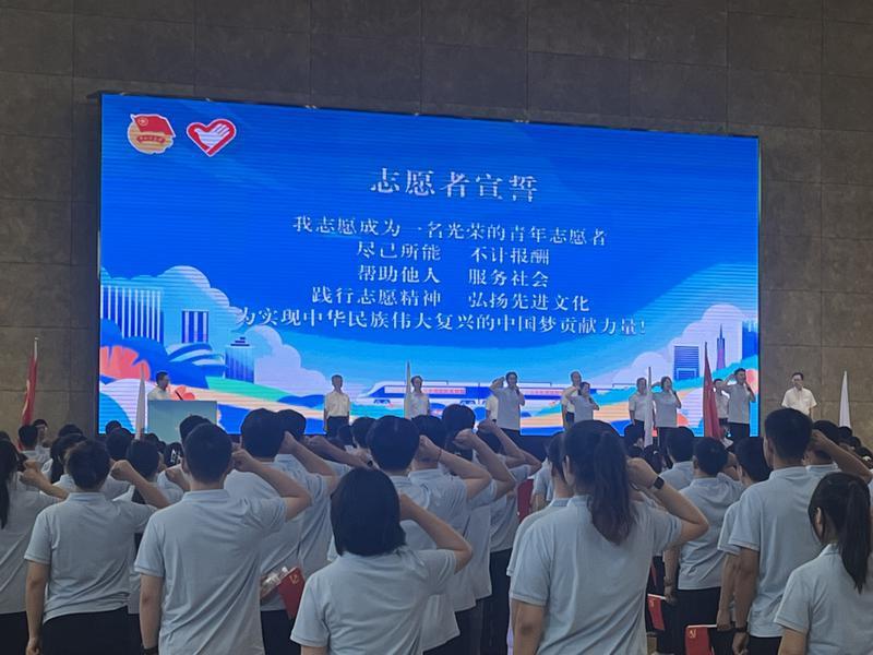 7月24日出征仪式上,与会领导为2025年新招募在陕服务西部计划志愿者赠送出征装备,为2025年陕西省大学生志愿服务西部计划陕西服务总队和各服务分队授旗,全体西部计划志愿者庄严宣誓,集体发出了“清澈的爱,只为中国”的青春誓言。