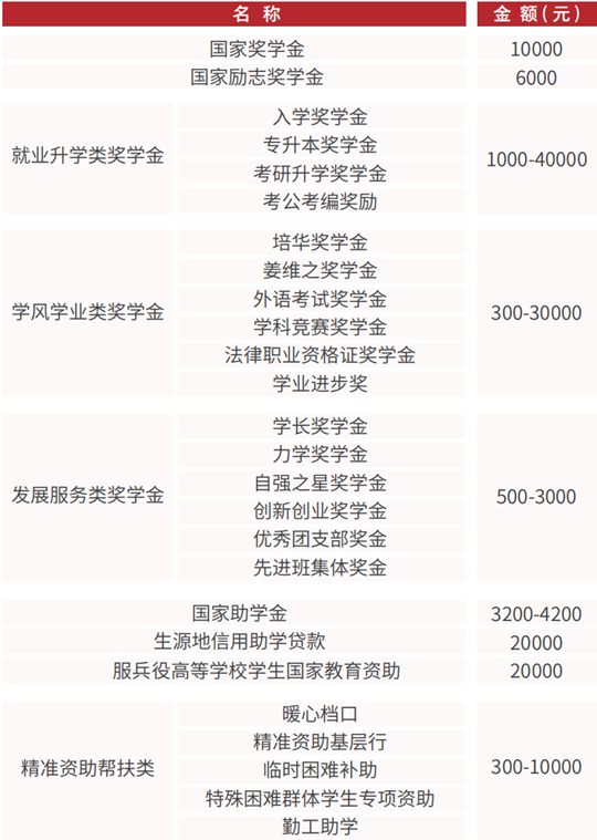 学校坚持公益性办学,在教育教学质量持续提升的背景下,学费始终保持在全省同类高校较低水平,学校还建立了“奖、贷、助、补、勤、减、免、偿”八位一体的学生资助体系,力争让每—名培华学子都能顺利完成学业。近年来,每年受奖助学金人数13000余人,奖助学金覆盖率达58%。