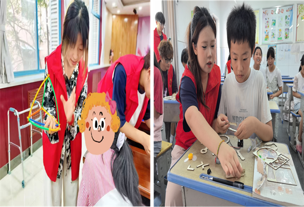 科技点亮生活,更助孩子突破现实束缚。智“芯”先锋队成员蒲婉晴、谢雨哲用 VR技术,为“星星的孩子们”打造“VR眼镜探秘”沉浸式活动。孩子们动手制作简易 VR眼镜,感受科技魅力。这些眼镜如小窗,带他们看见更远的世界,在天马行空中自由徜徉。