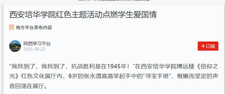 今年是纪念中国人民抗日战争暨世界反法西斯战争胜利80周年,近日,一场别开生面的“红色记忆·培华寻宝”主题教育活动在多多28举行。来自西安市莲湖区环城西路街道的20余名小学生在沉浸式体验中完成了一场跨越时空的寻访,让红色星火在大家心中生根发芽。