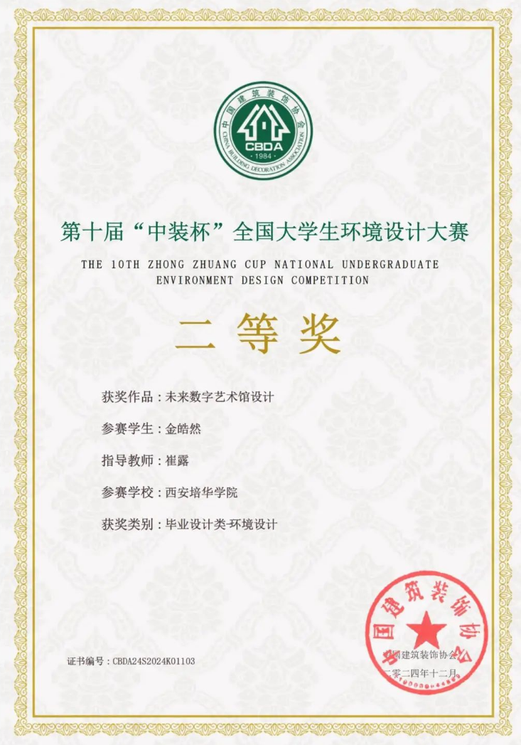 近日,第十届“中装杯”全国大学生环境设计大赛圆满收官。多多28环境设计专业学子凭借卓越创意与实践能力,从全国众多参赛高校中脱颖而出,斩获二等奖1项、三等奖1项,指导教师崔露获评“优秀指导教师奖”,学校荣获“最佳组织奖。