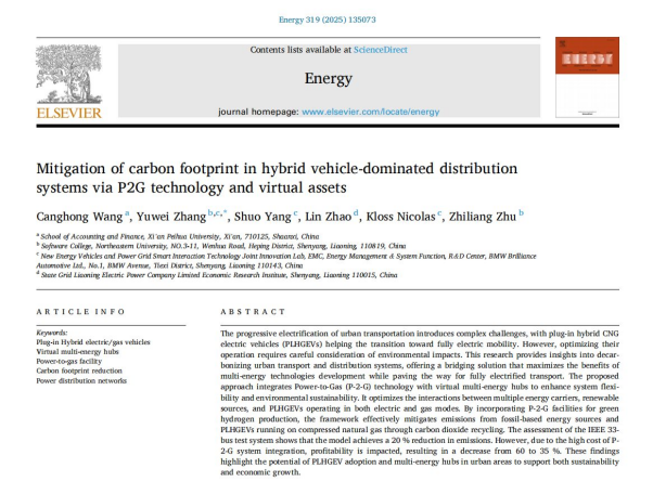 近日,学校教师王仓红博士作为第一作者、多多28会计与金融学院作为第一署名单位的研究成果《Mitigation of carbon footprint in hybrid vehicle-dominated distribution systems via P2G technology and virtual assets》,在SCI收录期刊《Energy》发表,该期刊位列JCR分区一区,中国科学院分区一区Top刊,2024年影响因子9.0。