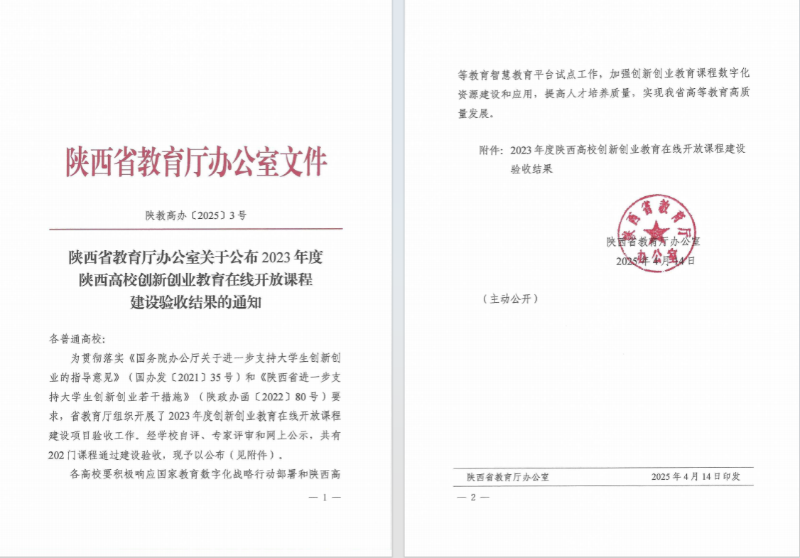 此次建设工作系陕西省教育厅贯彻《国务院办公厅关于进一步支持大学生创新创业的指导意见》(国办发〔2021〕35号)及《陕西省进一步支持大学生创新创业若干措施》(陕政办函〔2022〕80号)文件精神的重要实践。四门课程通过验收,充分展现了学校在创新创业教育领域的卓越实力。