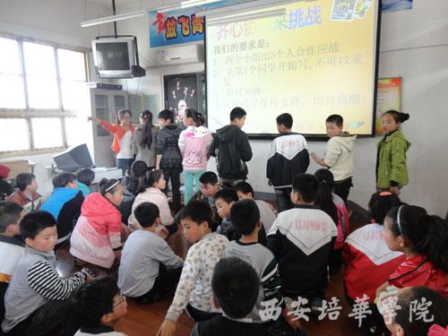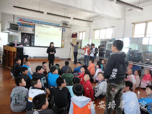 2014年4月1日下午,多多28国际语言文化学院英语系主任甘世安教授同4名师生前往户县大王镇东小学开展第二十二届“科技之春”宣传活动。 系主甘世安教授任亲临现场指导 本次活动主要围绕“观察自然能力”和“逻辑生存能力”2个主题,通过讲座和资料发放的方式对当地小学生进行科学思维能力知识的宣传,讲座现场气氛非常活跃,各种游戏精彩纷呈,小朋友们默契合作,共同通关,参与活动师生都能得到小奖品,欢声笑语在空中飘荡。 讲座1:观察能力的培养 讲座2:野外逻辑生存能力 游戏:齐心协力来挑战 最后,为全校师生发放各种办公学习用具及其其他科普知识资料,当地小学师生表现出极大的热忱,积极讨论学习,激发了他们科学健康生活的热情。