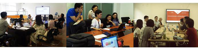 8月25日上午,苏州大学应用技术学院第二批应用型课程建设项目负责人以二级学院为单位分为三个小组,分别由我校教师对课程负责人就课程定位、课程结构、教学方法、考核评价模式等环节进行一对一指导。