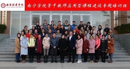 11月27日至30日,由我校和南宁学院联合主办的“第二期应用型课程建设专题培训班”在我校长安校区隆重举行。本期培训班旨在进一步加深教师对应用型课程的认识和理解,全面提高教师业务水平和教学能力,不断推进应用型课程建设进程。出席本次培训活动的领导有我校教务管理中心主任唐学学、副主任张伟、南宁学院教务处副处长蓝军斌。南宁学院46名教师代表参加本期培训班,深入学习了应用型课程改革的案例和经验。本期培训活动由教务管理中心全婧老师主持。