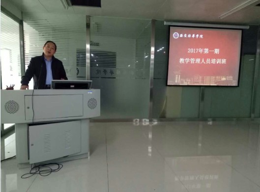 教务管理中心唐学学主任做了题为《如何做好一名优秀的教学管理人员》的报告,报告内容丰富务实,从教学管理的工作性质、地位、作用、素质要求等方面做了详尽剖析,并阐述了如何打造一批优秀教学管理人员。陈雷副主任强调作为管理人员要做到内外兼修、提升服务、正确定位,内化于心、外化于行、知行合一,要加强自身学习,不断提高自身的素质和能力,发扬积极主动、认真负责的精神。