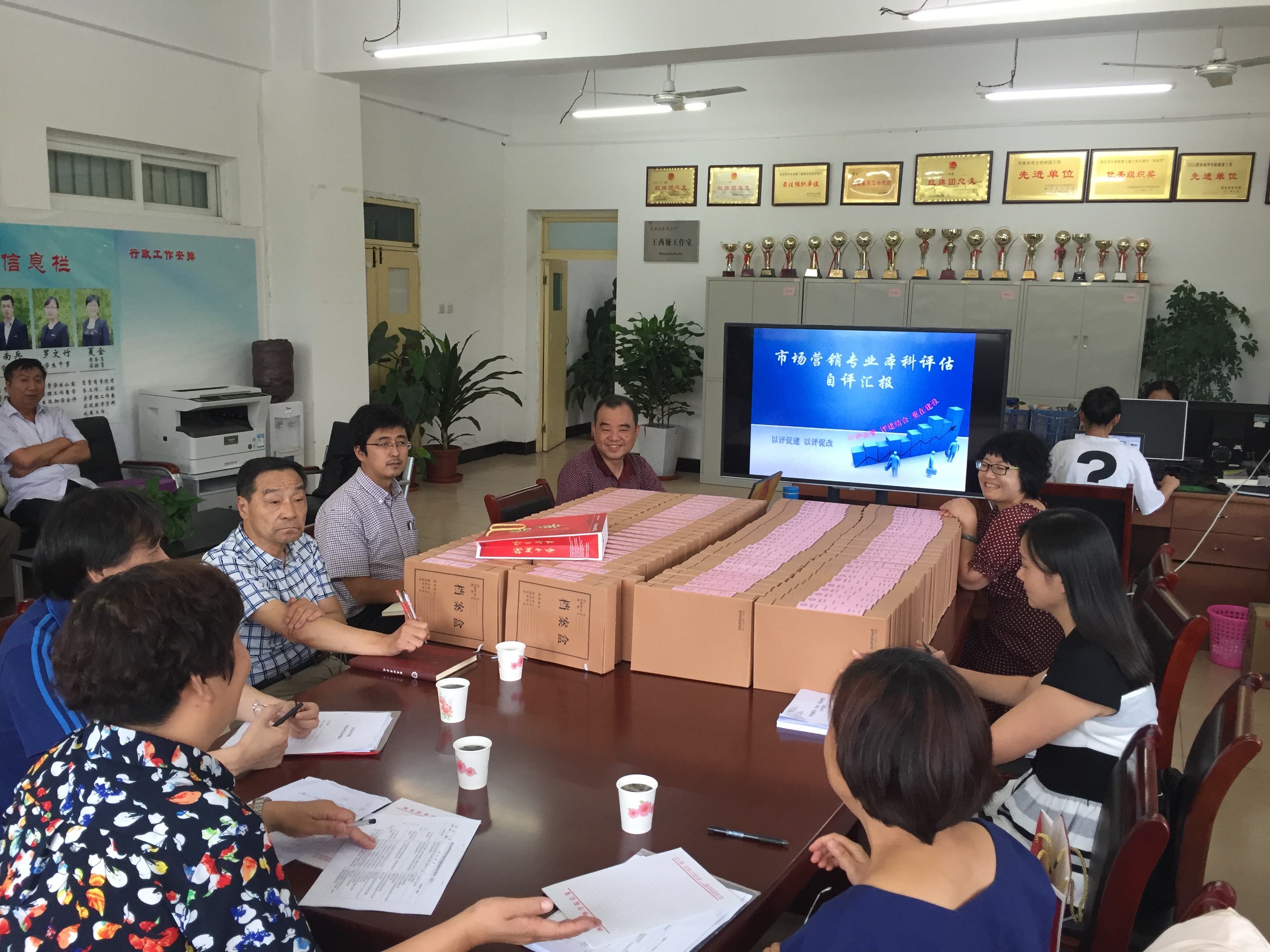 8月26日-8月30日,在专业评估专家组组长,校党委书记周庆华的领导下,校内专业自评专家组对十二个专业进行了迎评检查。第一检查组由王西安教授担任组长,贺润坤教授、陈玲教授、尚宇梅教授为组员,检查的专业有:计算机科学与技术、电子信息工程、视觉传达设计、环境设计、英语、工程造价(专科)。第二检查组由李娇萍教授担任组长,张朝晖教授、李建森教授、邢方教授为组员,检查的专业有:会计学、国际经济与贸易、市场营销、汉语言文学、会计(专科)、市场营销(专科)。