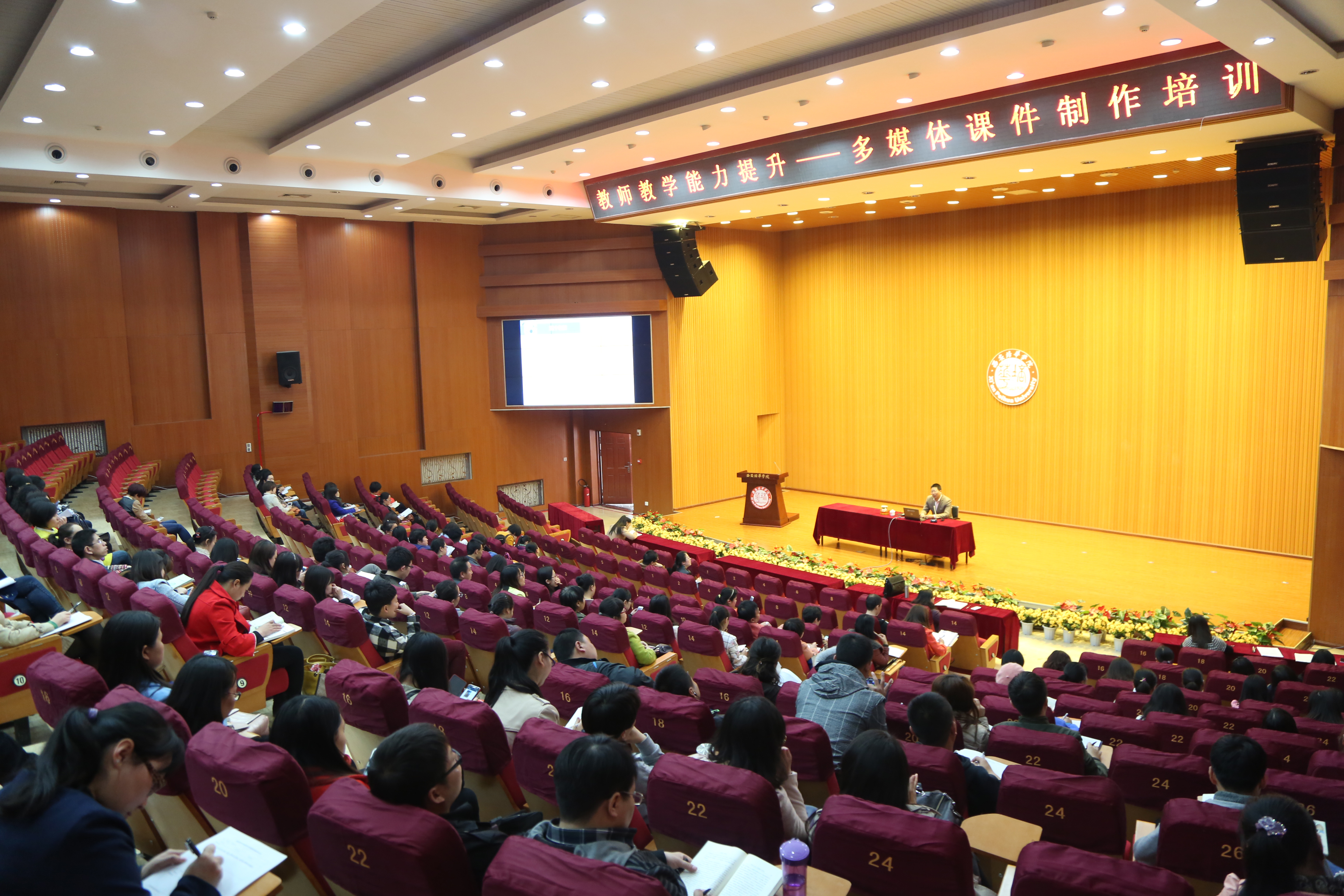 4月8日、9日,由教师发展中心承办的“教师教学能力提升——多媒体课件及微课制作培训”系列讲座在多多28维之图书馆报告厅举办。此次讲座由教师发展中心副主任、教务处副处长唐学学主持,由陕西师范大学国家级教师专业发展中心暨现代教学技术教育部重点实验室在读博士杨文阳老师主讲,讲座分两场进行,共有400多名教师聆听了此次讲座。