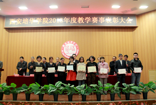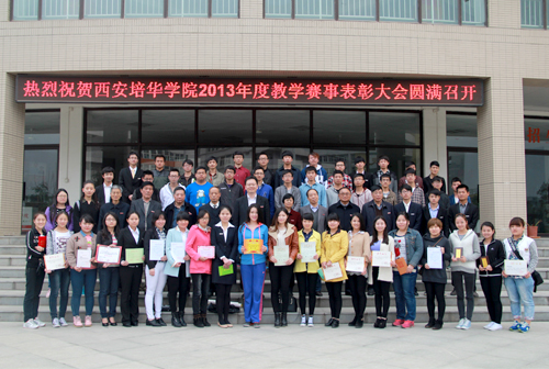 2014年4月2日下午,我校在长安校区明德楼四层报告厅召开了2013年度教学赛事表彰大会,理事长姜波,校长王拴才、书记周庆华、副校长陈胜秋、张栓升、段茂贤、王根性、刘应南,校长助理姜朗出席大会,各院(部)教学副院长(副主任)以及相关处(室)负责人及500多名师生参会,共同见证了2013年度学校师生在各项教学赛事中取得的骄人成果。