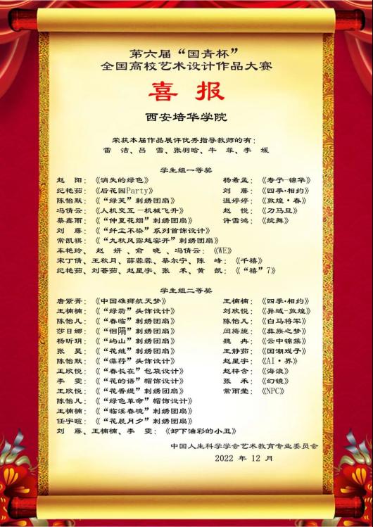 近日,第六届“国青杯”全国高校艺术设计作品大赛结果揭晓,培华师生在比赛中荣获多个奖项。