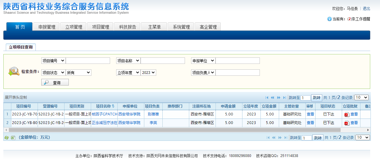 近日,陕西省科学技术厅发布了《陕西省科学技术厅关于下达陕西省2023年科技计划项目补助经费的通知》(陕科发[2022]41号),陕西省财政厅发布了《陕西省财政厅关于提前下达2023年省级科技计划项目补助经费的通知》(陕财办教[2022]203号),2023年度陕西省科技计划项目立项结果已经确定。