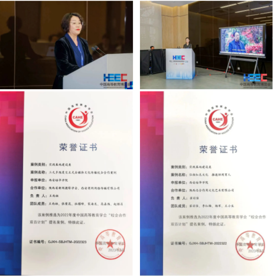 近日,中国高等教育学会《关于开展2022-2023年度“校企合作双百计划”第一批双走访活动的通知》,公布了西南、西北地区90项“校企合作 双百计划”典型案例提名名单。学校传媒学院王西娅申报的《三元多维度交互式全媒体文化传播校企合作案例》和翟羽佳申报的《弘扬红色文化 推进协同育人》2项实践基地建设类项目入选,并于4月8-9日在第58﹒59届高教博览会上进行了集中展示和答辩。