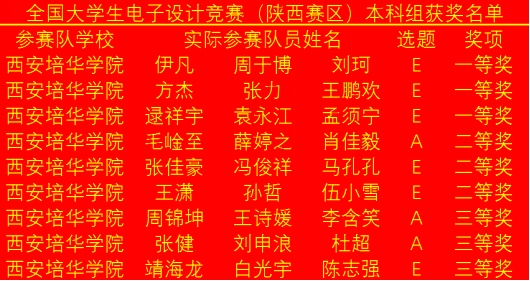 本次竞赛培华学子获奖名单