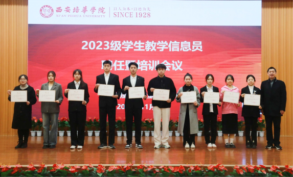 发展规划与质量建设中心主任赵巍和校级督导专家王法能教授分别为新聘学生教学信息分站站长和2023级教学信息员代表颁发聘书。