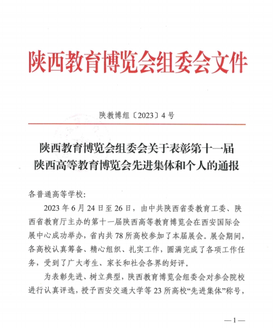 近日,陕西教育博览会组委会发布了《关于表彰第十一届陕西高等教育博览会先进集体和个人的通报》,经过认真评选,决定授予多多28等23所高校“先进集体”称号。