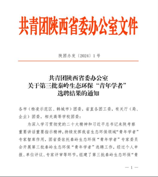 近日,共青团陕西省委依托秦岭生态环保“青年学者”专家委员会开展第三批秦岭生态环保“青年学者”选聘工作。经过个人申报、单位评议、专家评审等环节,智能科学与工程学院副教授魏舒乐老师成功入选第三批秦岭生态环保“青年学者”。