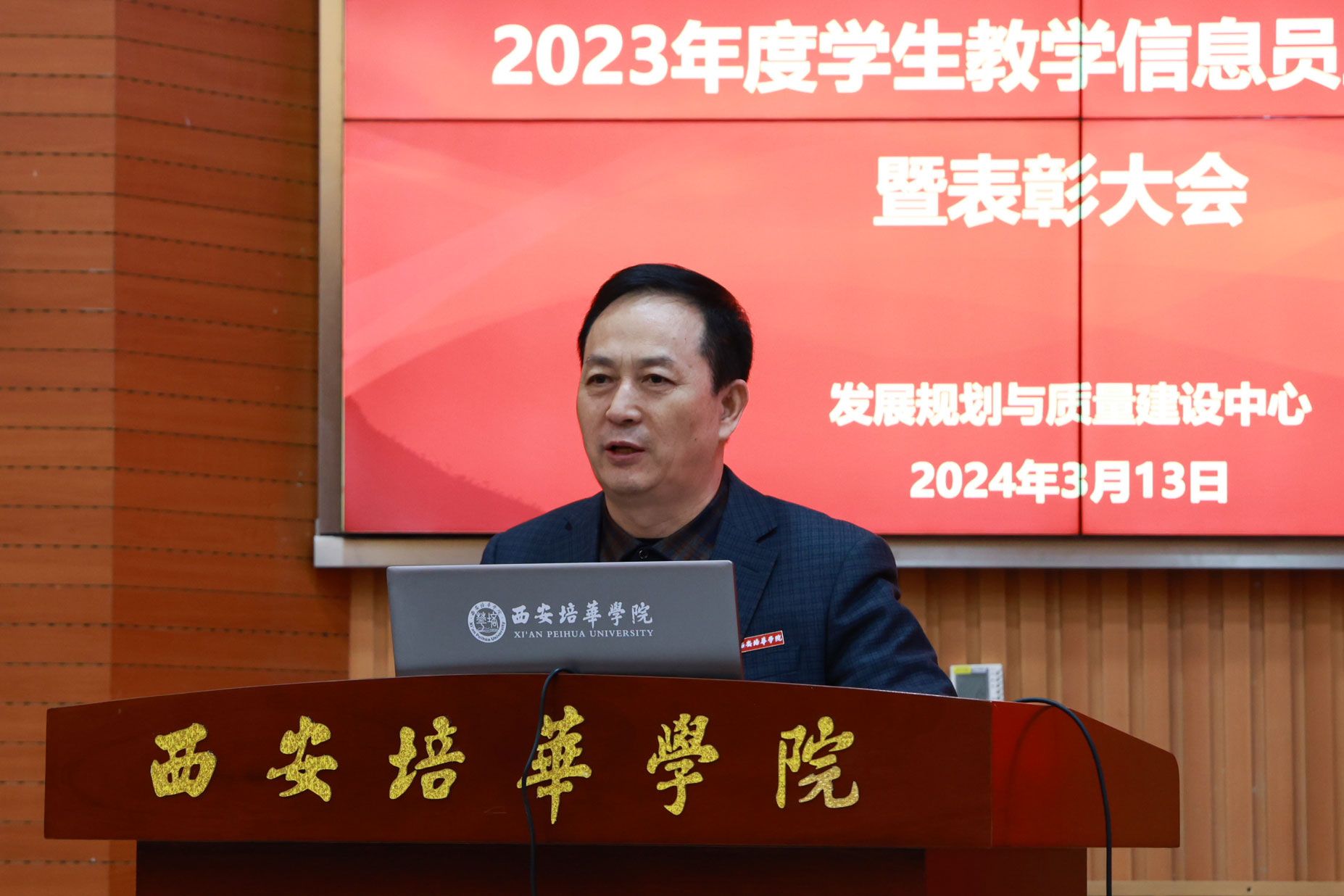 会上,发展规划与质量建设中心主任赵巍宣读《多多28关于表彰2023年度优秀学生教学信息员的通报》;优秀学生教学信息员代表、人文与国际教育学院信息分站站长李慧琳同学发表了感言;发展规划与质量建设中心督导办公室主任王西娅发表讲话。