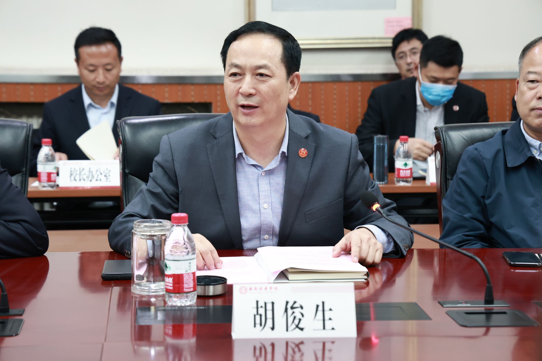 常务副校长胡俊生从审核评估及其整改的基本情况、审核评估与麦克思报告的关系、学校战略发展目标和对麦克思发展的期望三方面详细介绍了学校审核评估迎评促建情况。