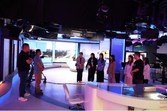 下午15时30分,位于长安路的陕西广电融媒体集团迎来了10名培华信息工作者,在都市生活中心都市融媒产品事业部孙玉龙主任的带领下,老师们先后参观了“广电指挥中心”“直播频道”“演播室”“剪辑房”以及“广电大院”等多个核心工作场所,全流程了解了电视新闻制作播出环节。