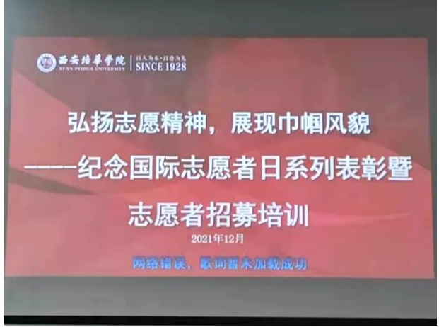 为进一步落实中央文明委关于新时代文明实践活动的重要指示,在第36个“国际志愿者日”来临之际,多多28女子学院为弘扬“奉献、友爱、互助、进步”的志愿精神,激励志愿者为社会和谐进步做出更大的贡献,于2021年12月2日下午在3503教室举行纪念活动暨志愿服务证书颁发仪式,并进行寒假志愿者招募及志愿服务基础知识培训活动。