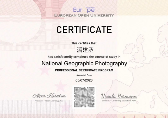 在繁忙的工作与个人生活之间,他还前往美国萨凡纳艺术学院进一步深造,不断提升自己的艺术造诣与创作技能。此外,凭借着对摄影艺术的深刻理解和精湛技艺,潘建丞还获得了国家地理认证摄影师的证书,这是对他不懈努力的高度认可。