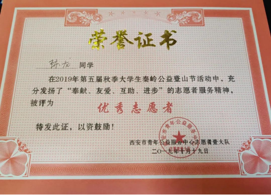 陈龙从小就对体育很感兴趣,大学期间参加过不少比赛,还担任过许多赛事的志愿者。2019年他获得长安国际女子半程马拉松暨全国女子半程马拉松锦标赛优秀志愿者;同年8月获得第五届秋季大学生公益登山节活动优秀志愿者;在西安市第六届橄榄球“元旦碗”取得腰旗组冠军;2024年获得中国人寿NYBO(榆林站)U14冠军教练……陈龙的经历就像一场耐力长跑,由点滴汗水铺就的彩虹之路,作为永恒的引擎,驱动着他在宽阔的大道上一路驰骋。