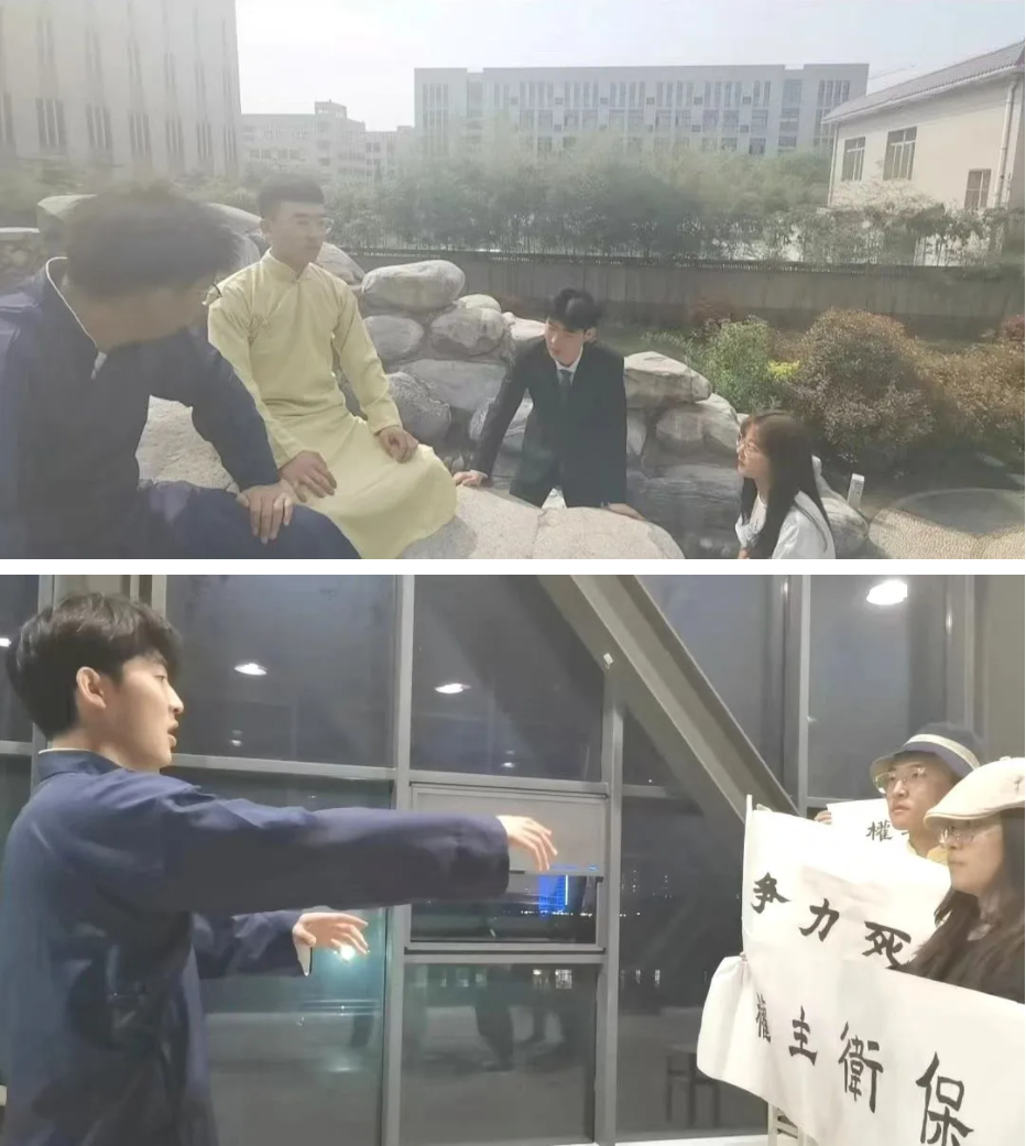 接到任务后,刘承俊与他的团队成员立即投入到了紧张的准备工作中,经过查阅资料、撰写脚本,并付诸拍摄制作,他们以实景演绎的方式,将“五四运动”这一历史事件以大学生视角呈现为一部微电影,在网络上进行传播。