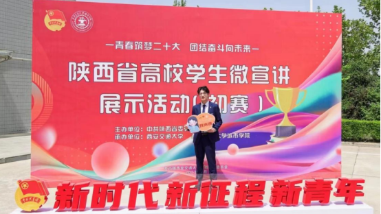 凭着日常的积累与探索,他掌握了大量的演讲技巧,通过院级、校级、省级层层选拔,最终入选陕西省大学生二十大精神宣讲团,走上西安交通大学的宣讲舞台,为全省青年学子传播二十大声音。