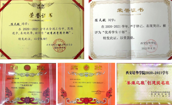 在校期间,他荣获校级“优秀共青团干部”“优秀学生干部”“优秀共青团员”等荣誉称号。带领新闻学2020团支部荣获省级“样板团支部”“五四红旗团支部”以及“姜维之班”创建提名班等荣誉。陈天航表示,个人成长应该融入集体中,借助大浪奔驰千里。团学工作是思政课的另一个窗口,能跟同学、老师一起“为荣誉而战”,那是一件幸福的事。