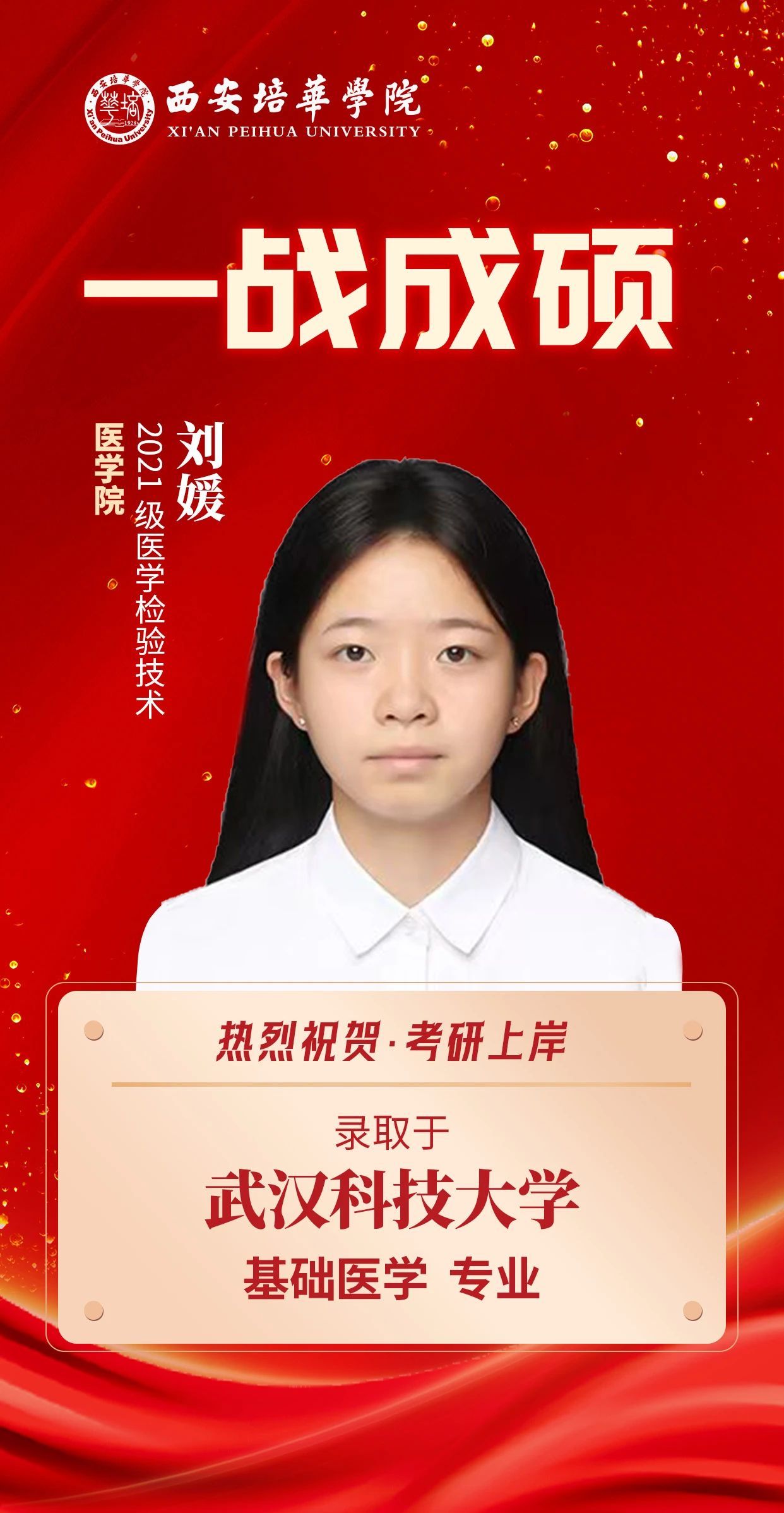 ——2021级医学检验技术 刘媛考入武汉科技大学