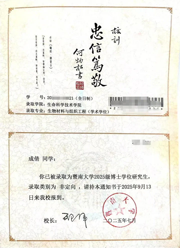 凭借扎实的学术功底与丰硕的科研成果,她积极投身学术交流,并精心准备申博材料,终在暨南大学圆满完成了人生学术征途的接力。